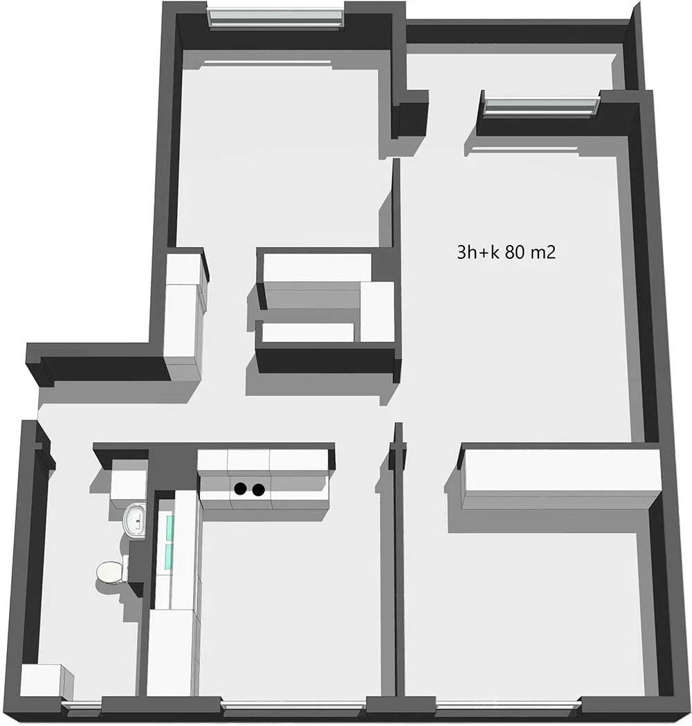 House TU is located right next to the car park. In 2016, major repairs were made. The ventilation systems in the house were renewed and equipped with a cooling system. This, together with the new windows and facades, helps to keep the apartments cooler in summer. All apartments also have a glassed-in balcony facing south.