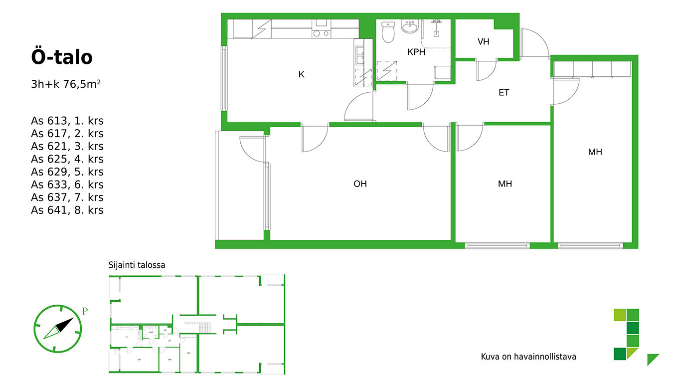 Ö633 Ö633 3h+k 76,5 m2 76.5 874.68 Tee asuntohakemus Katso